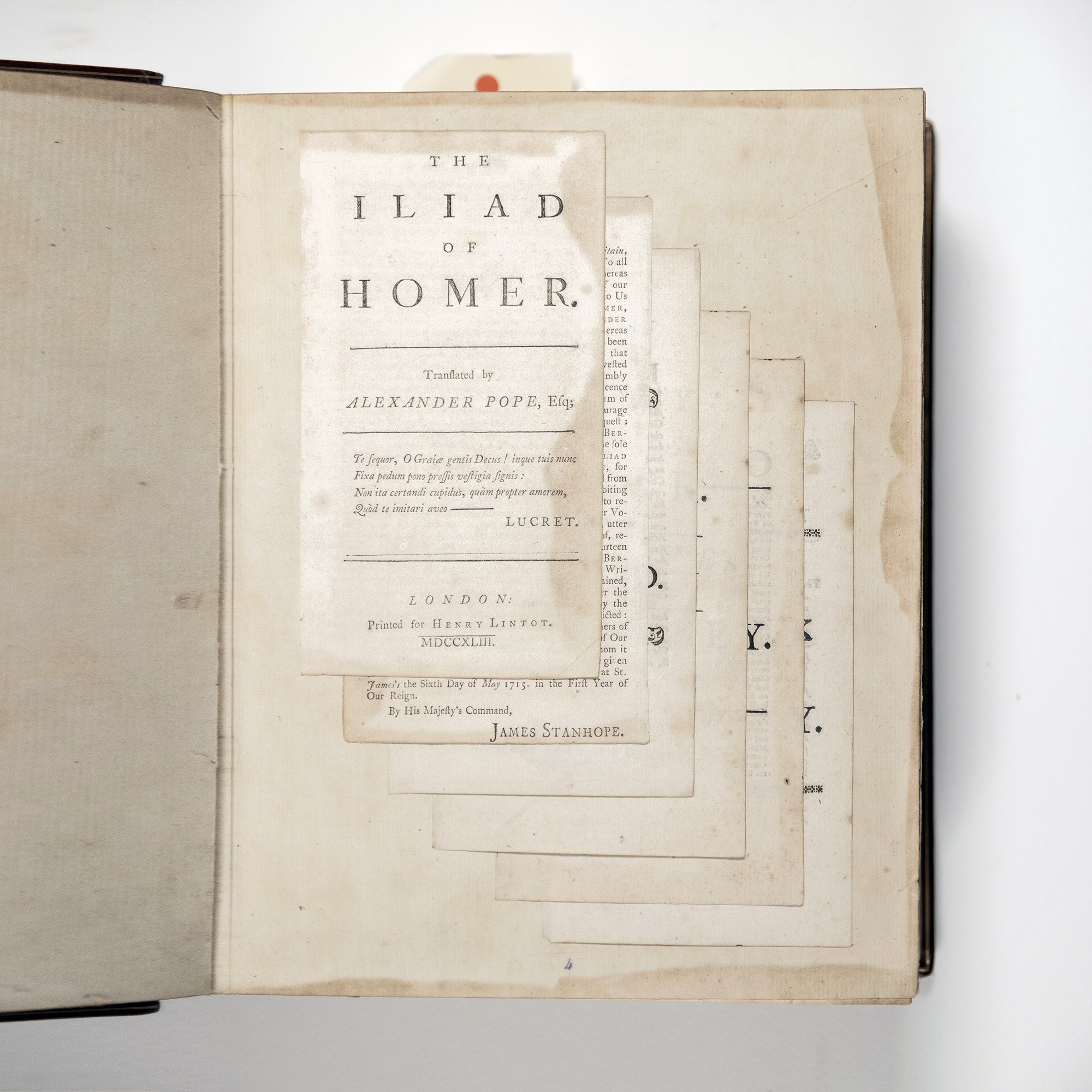 The Iliad [and The Odyssey] of Homer translated by Mr. Pope. London: Printed by W. Bowyer, for Bernard Lintott, 1715-1726.