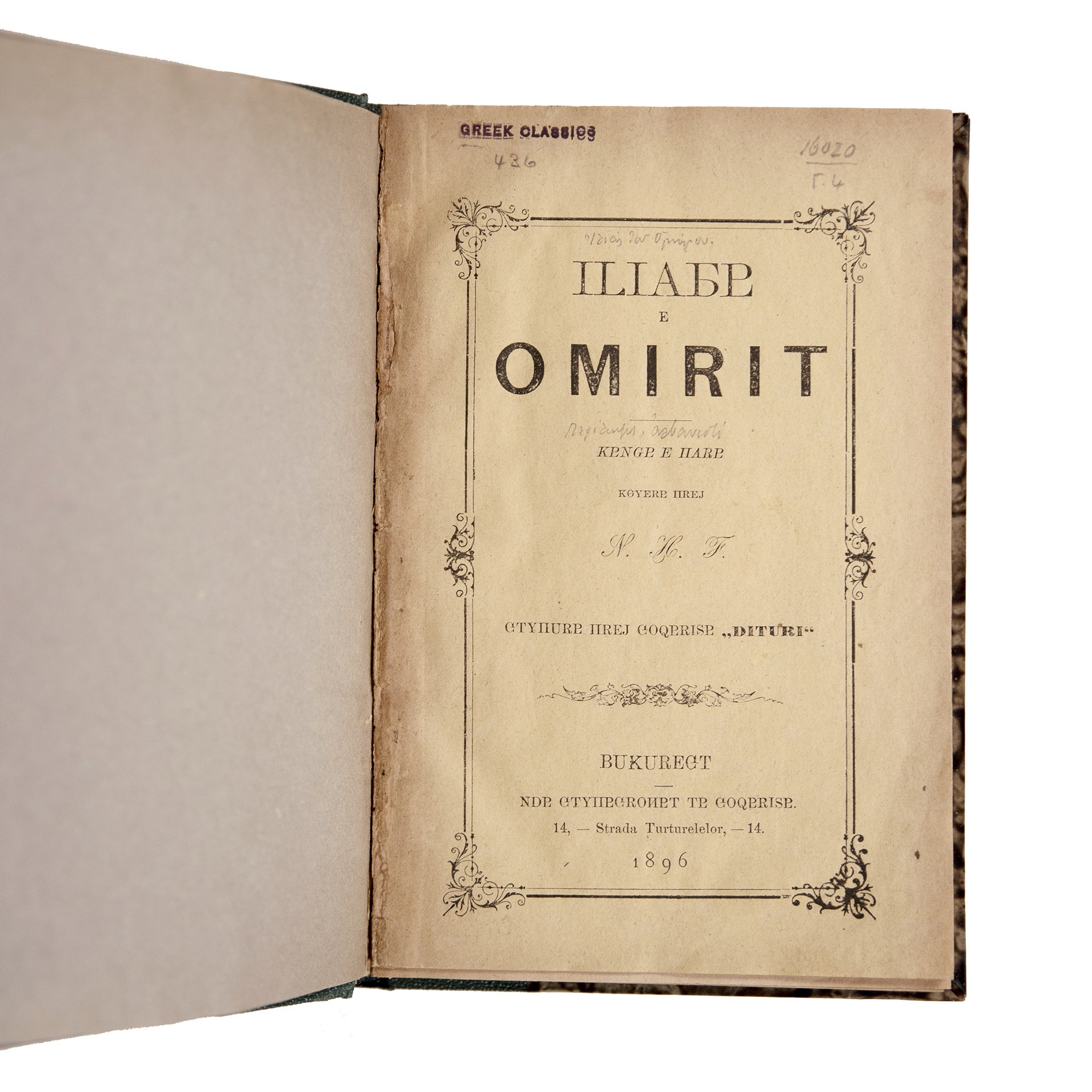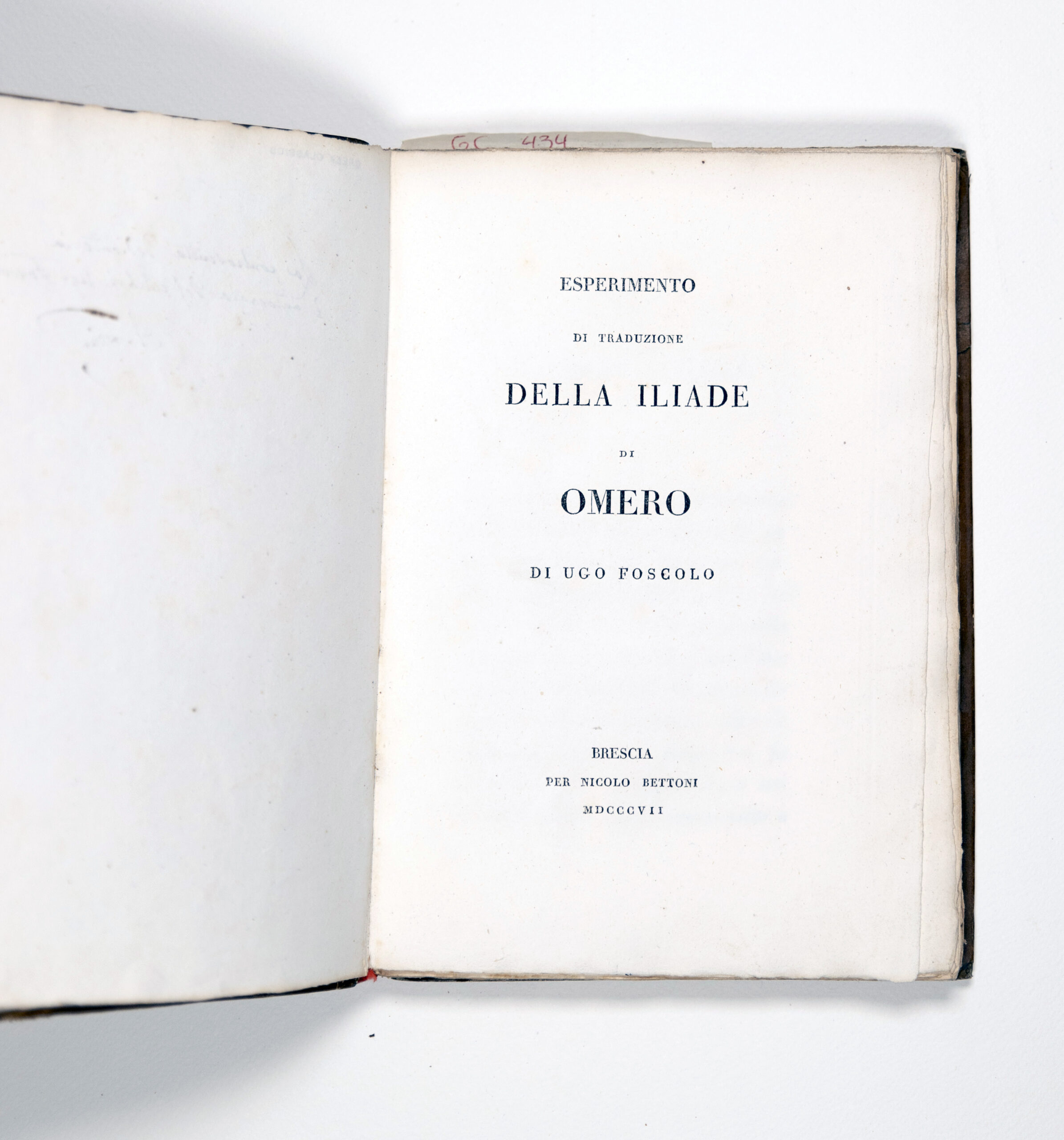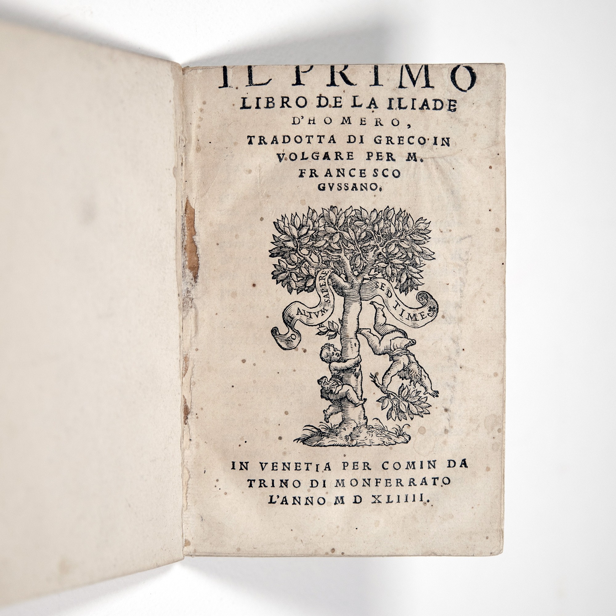 The first Italian translation of part of the Homeric epics by Francesco Gussano (16th century). It is the first book of the Iliad and was printed in Venice by Comin da Trino di Monferrato (fl. 1539-1574).